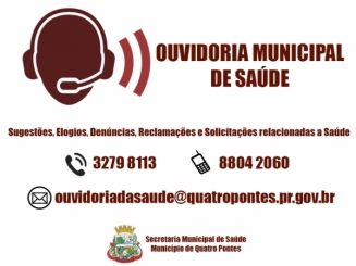 Com a finalidade de oferecer saúde de qualidade aos quatropontenses, a Secretaria Municipal de Saúde conta com a Ouvidoria Municipal de Saúde.