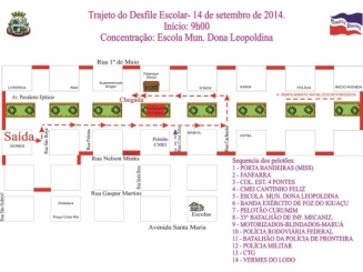 Irão desfilar a Escola Municipal Dona Leopoldina, CMEI Cantinho Feliz, Colégio Estadual Quatro Pontes, Banda do Exército de Foz, 33º Infantaria Mecanizada, Motorizados e Blindados do Exército Maruá, Polícia Rodoviária Federal - PRF, Batalhão de Polícia de Fronteira – BPFron, Polícia Militar, CTG e Trilheiros Vermes de Lodo.