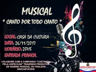 Um dos eventos mais aguardados pelos quatroponteses é o Musical “Canto por todo Canto” que irá acontecer neste domingo dia 26 de novembro na Casa da Cultura a partir das 20:00h.
