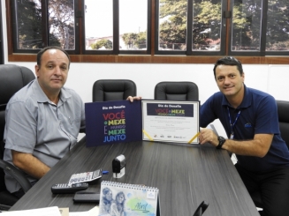 Nesta quinta-feira (12), o prefeito João Laufer recebeu do técnico de atividades do Sesc Marechal Cândido Rondon, Marcelo Moresco, o certificado de mérito comunitário do Dia do Desafio 2017, uma campanha mundial de incentivo à pratica de esporte, atividade física e à adoção de hábitos saudáveis.