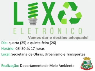 Nesta quarta (25) e quinta-feira (26), a Prefeitura de Quatro Pontes, por intermédio do Departamento de Meio Ambiente, realizará mais uma campanha de lixo eletrônico. A recolha dos equipamentos ocorrerá no parque de máquinas da Secretaria de Obras, Urbanismo e Transportes (Viação e Obras), das 08h30 às 12 horas e das 13h30 às 17 horas.