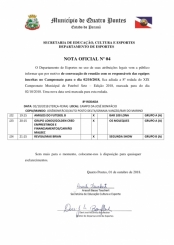 O Departamento de Esportes, no uso de suas atribuições legais, adiou a 8ª rodada do 19º Campeonato de Futebol Sete, categorias amador e veterano, com jogos marcados para hoje (02), no campo da Linha José Bonifácio, em Quatro Pontes. O motivo se deve à convocação de reunião com os responsáveis das equipes inscritas na competição, que acontecerá nesta terça-feira.