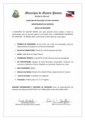 Podem participar só equipes do município, desde associações, empresas do comércio, indústria e outros, podendo ser no masculino, feminino ou misto, na categoria adulto. O número mínimo de atletas por equipe é dois e o máximo três, sendo um reserva. O congresso técnico será realizado no próximo dia 04, às 19 horas, antes do início da competição, ocasião em que será combinado o valor da taxa de inscrição. A premiação será em troféus do 1º ao 3º lugar.