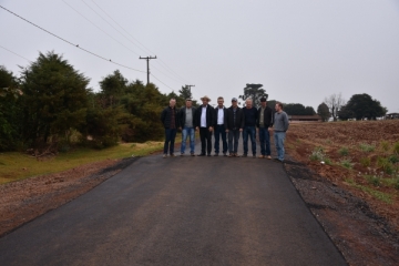 Com o propósito de trocar experiência e conhecer novas soluções para recuperação e manutenção de estradas rurais, o presidente da Câmara de Vereadores de Cafelândia, Charles Roling, visitou hoje (26) o prefeito de Quatro Pontes, João Laufer. Após aclarar a respeito da pavimentação asfáltica sobre o estabilizante sólido Dynabase, que está sendo feita em trecho nas Linhas Sanga Leão e Guaçu, englobando 3,26 quilômetros, o mandatário mostrou in loco o que foi concluído até o momento. Agora, a intenção de Roling é apresentar ao Poder Público e comunidade de Cafelândia.