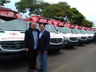 O prefeito de Quatro Pontes, João Laufer, prestigiou ontem (05), nas dependências da Associação dos Municípios do Oeste do Paraná (Amop), em Cascavel, a solenidade de entrega de 31 ambulâncias ao Consórcio Intermunicipal Samu Oeste (Consamu), que reuniu o secretário estadual de Saúde, Beto Preto, o presidente do Consamu e prefeito de Palotina, Jucenir Stentzler, demais prefeitos, secretários municipais de Saúde, além de deputados e outras autoridades.