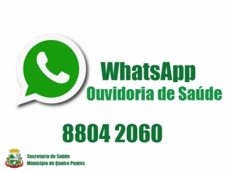 A Ouvidoria Municipal da Saúde serve para que os cidadãos quatropontenses façam queixas, denuncias, reclamações, solicitações e elogios relacionados a saúde. O atendimento pode ser feito pelo telefone através do 45 3279 8112 ou no Centro de Saúde onde deve-se solicitar falar com o responsável pela ouvidoria. Outra forma de atendimento é através do e-mail: ouvidoriadasaude@quatropontes.pr.gov.br. A novidade é que agora as reclamações também podem ser feitas pelo WhatsApp pelo número 8804 2060.
