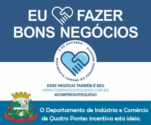 Nesta segunda-feira (05) acontece em todo o país o movimento chamado “Compre do Pequeno Negócio”. A iniciativa é do SEBRAE e tem como objetivo incentivar a população a comprar produtos e serviços de pequenos negócios. O Departamento de Indústria e Comércio da Prefeitura de Quatro Pontes apoia esta ideia.