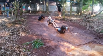 No domingo pela manhã os alunos tiveram uma atividade na lama.