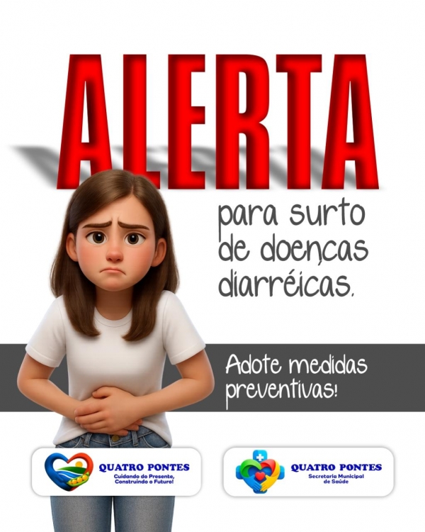 Quatro Pontes, 23 de setembro de 2025 – A Secretaria Municipal de Saúde, por meio da Vigilância Epidemiológica e da Vigilância Sanitária, alerta a população sobre o aumento no número de casos de doenças diarreicas registrados no município desde a semana epidemiológica 37 (iniciada em 07 de setembro).