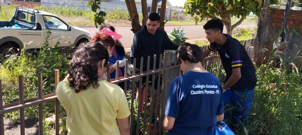 Quatro Pontes, 13 de novembro de 2025 – Dando continuidade às ações do Dia D de Mobilização Nacional contra o Aedes aegypti, o Setor de Controle de Endemias da Secretaria Municipal de Saúde de Quatro Pontes realizou, entre os dias 10 e 12 de novembro, atividades de limpeza e conscientização em parceria com o Colégio Estadual Quatro Pontes.