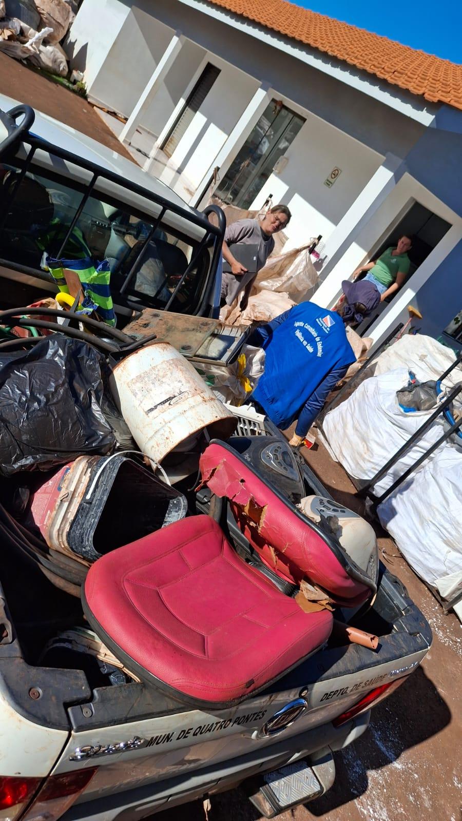 Quatro Pontes, 19 de novembro de 2025 – A Prefeitura de Quatro Pontes, por meio da Secretaria Municipal de Saúde, divulga o balanço do Arrastão contra a Dengue, realizado na área urbana do município nos dias 17 e 18 de novembro de 2025. A ação resultou na coleta de 10 cargas de materiais recicláveis e pneus, por meio de veículo utilitário Strada, e 2 cargas de caminhão caçamba, além de diversas retiradas de móveis descartados pela população. Durante o trabalho, também foram eliminados focos de criadouros do mosquito Aedes aegypti.