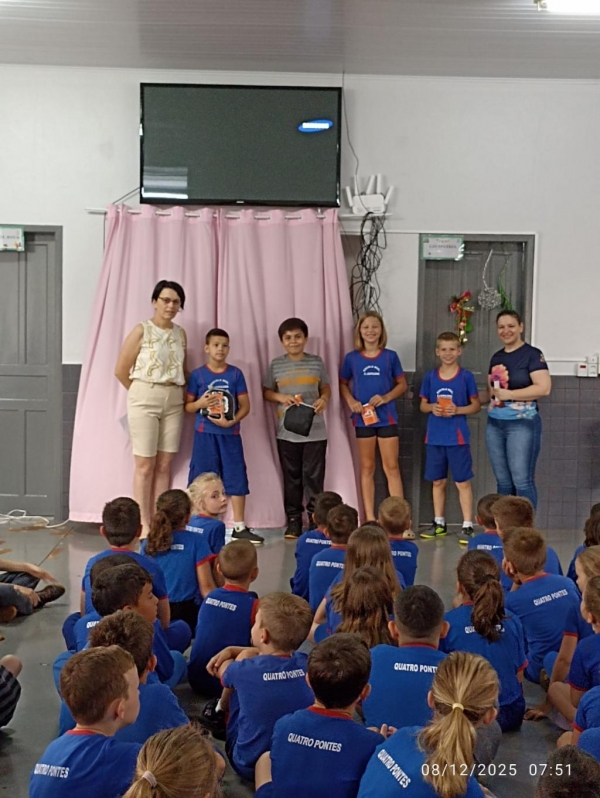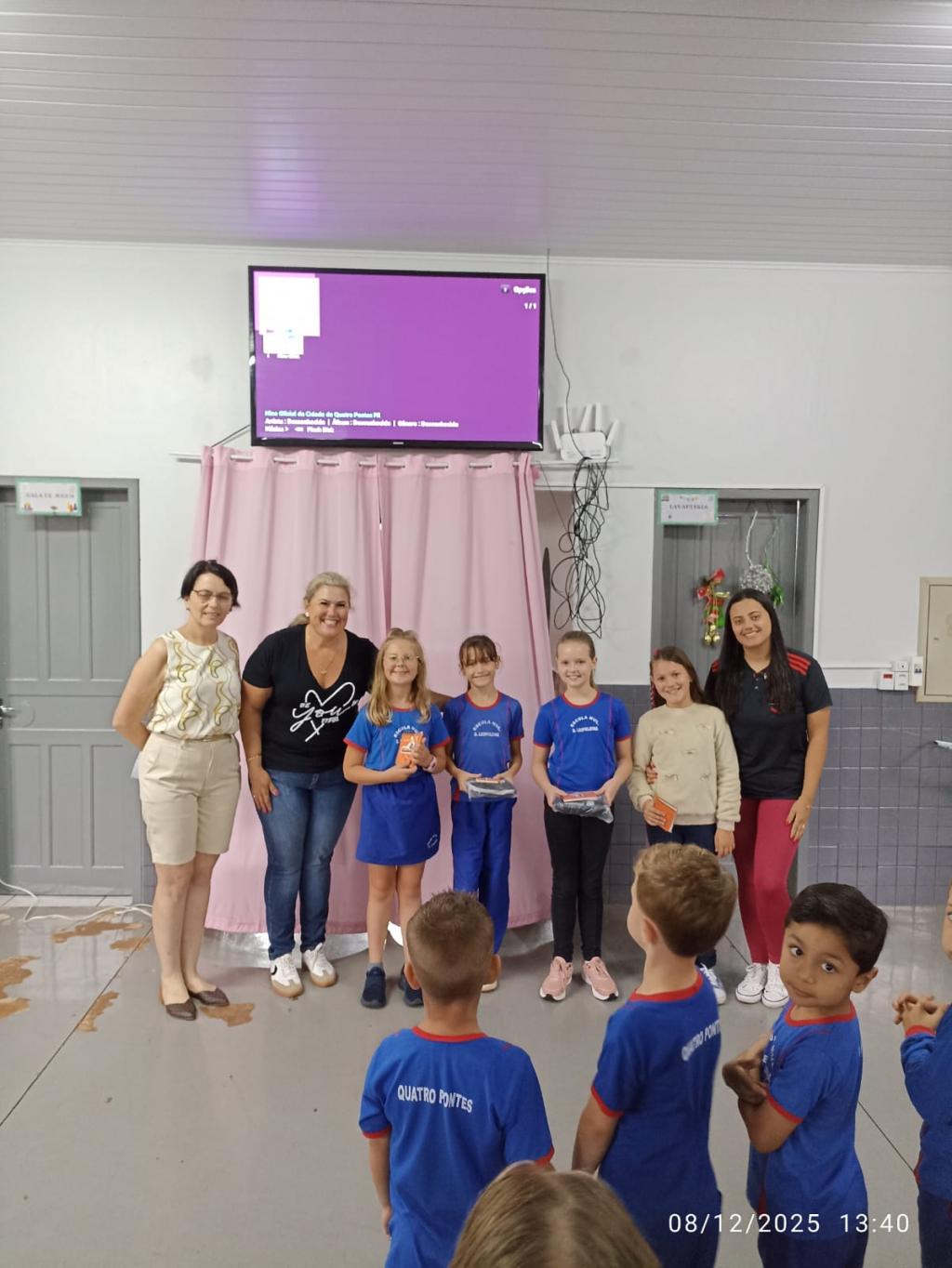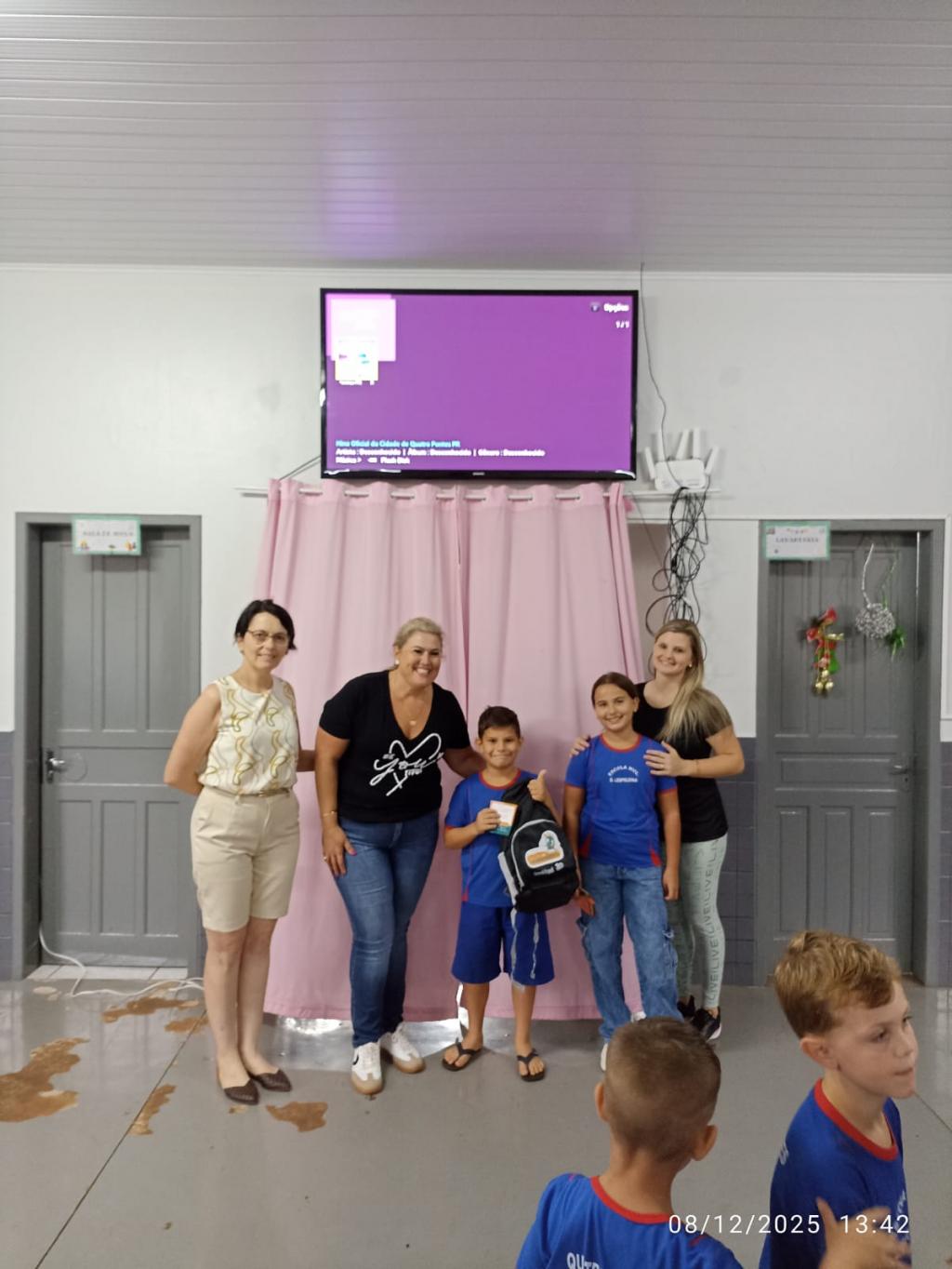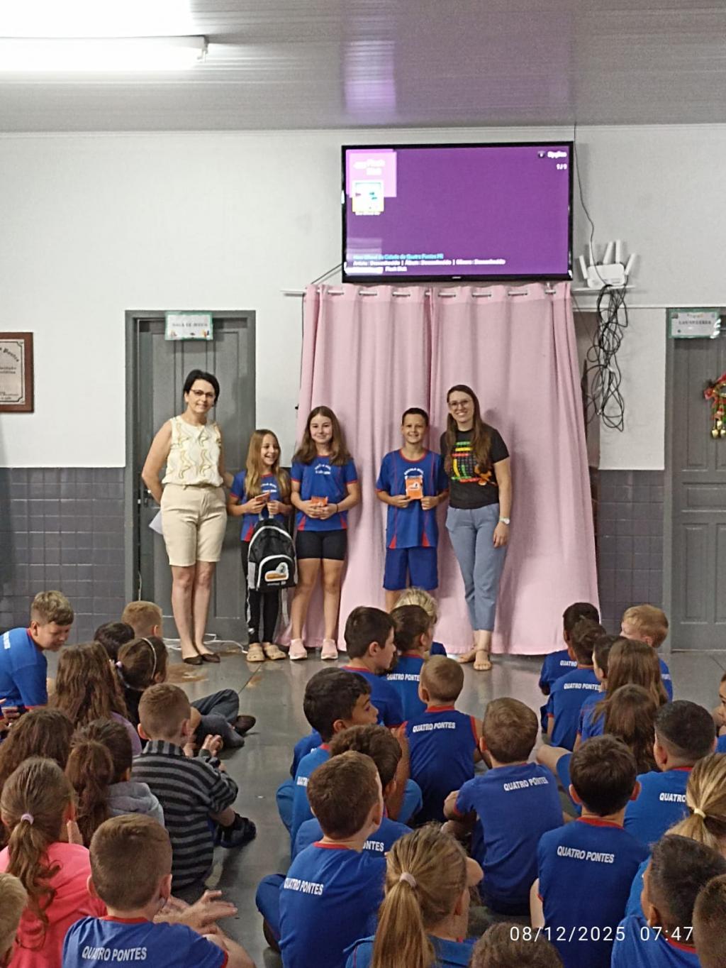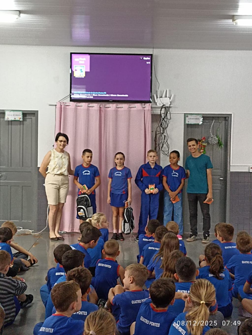 Quatro Pontes, 17 de dezembro de 2025 – A Escola Municipal Dona Leopoldina, de Quatro Pontes, realizou no dia 08 de dezembro de 2025, a Premiação Feras da Matemática, iniciativa do Programa Aprende Brasil, iniciada no mês de setembro. A ação teve como objetivo tornar os testes do Sondar uma experiência mais dinâmica, motivadora e significativa para os estudantes.