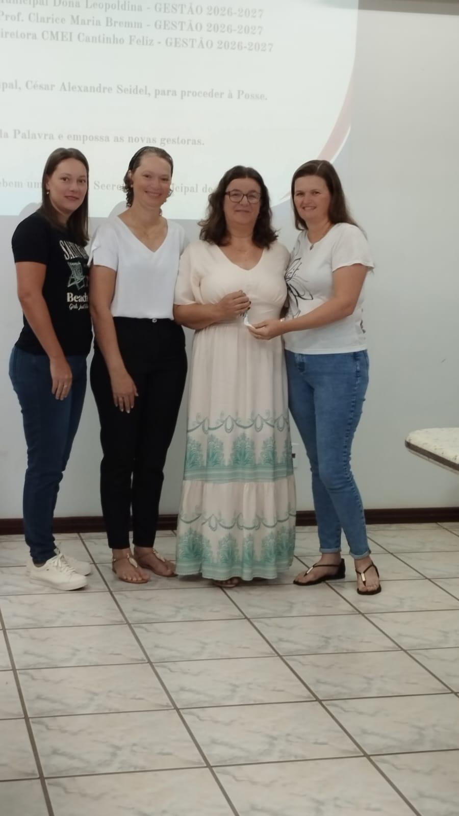 Quatro Pontes, 5 de janeiro de 2026 – A Prefeitura Municipal de Quatro Pontes realizou, na manhã desta segunda-feira (5), o ato simbólico de posse das diretoras das instituições da Rede Municipal de Ensino, eleitas por meio de Consulta à Comunidade Escolar para o mandato 2026–2027. A cerimônia ocorreu às 7h30, na sala de reuniões da Prefeitura, e contou com a presença de autoridades dos Poderes Executivo e Legislativo, representantes da Secretaria Municipal de Educação, profissionais da educação e membros da comunidade escolar.