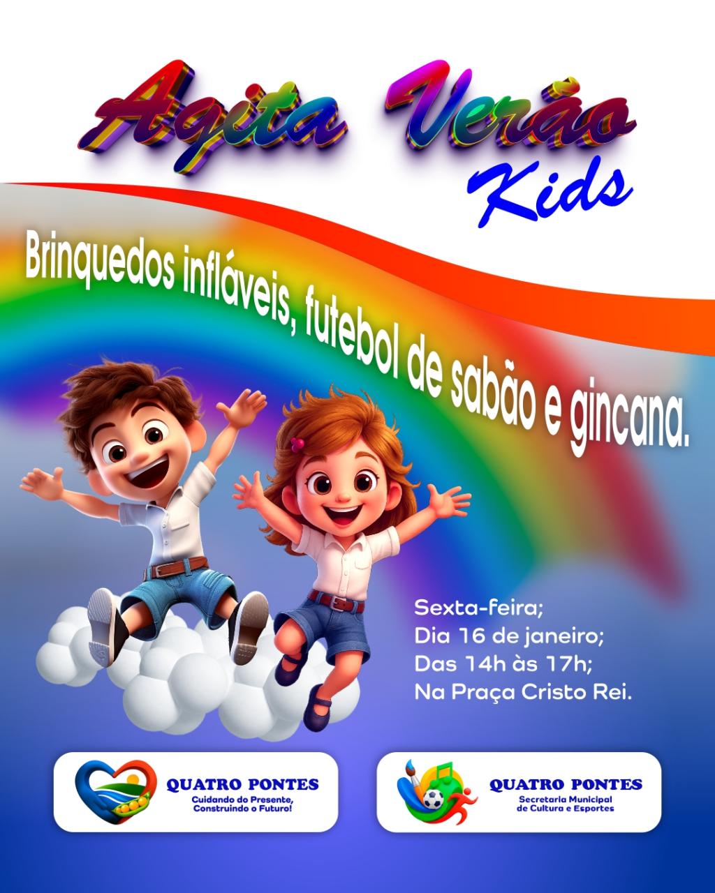 A iniciativa, denominada Agita Verão Kids 2026, tem como objetivo proporcionar momentos de lazer, integração social e estímulo à prática de atividades recreativas, contribuindo para o bem-estar e o desenvolvimento das crianças durante o recesso escolar.