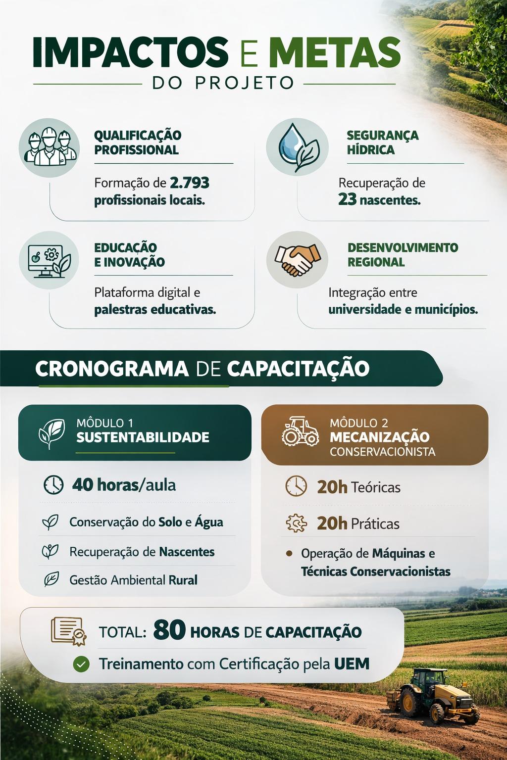 Sustentabilidade (40h): conservação do solo e da água, recuperação de nascentes e gestão ambiental rural