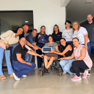 Programa “Por um Futuro Inclusivo” entrega equipamento de comunicação assistiva à moradora de Quatro Pontes
