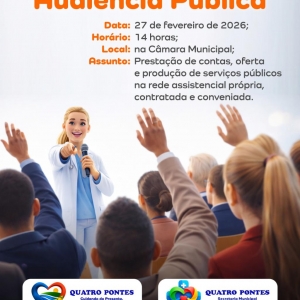 Câmara Municipal de Quatro Pontes convoca população para Audiência Pública de Prestação de Contas da Saúde