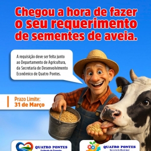 Produtores de leite devem protocolar requerimento para subsídio na aquisição de sementes de aveia