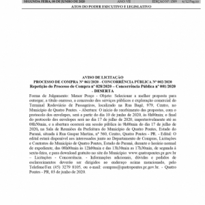 Prefeitura de Quatro Pontes abre nova licitação para atividade no terminal rodoviário