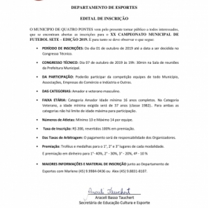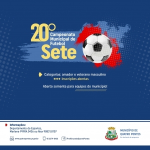 20º Campeonato Municipal de Futebol Sete está com inscrições abertas