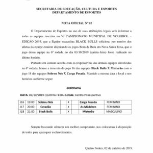 5ª Rodada do 6º Campeonato Municipal de Voleibol acontece hoje