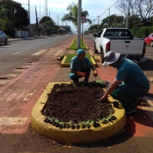 Cerca de 4 mil mudas de flores são plantadas na Avenida Presidente Epitácio