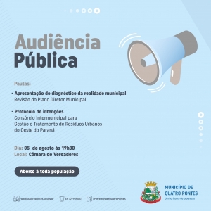 Quatro Pontes terá audiência pública sobre diagnóstico da realidade municipal hoje