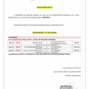 Final do 26º Campeonato Municipal de Futsal de Quatro Pontes é hoje