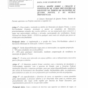 Quatro Pontes cria e institui curso pré-vestibular gratuito