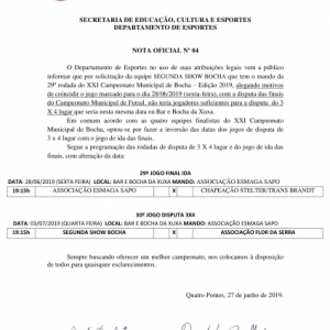 Final do 21º Campeonato Municipal de Bocha inicia amanhã