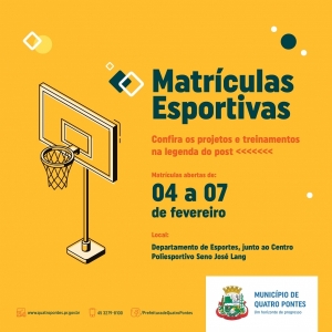 Matrículas culturais e esportivas encerram hoje em Quatro Pontes