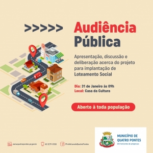 Prefeitura de Quatro Pontes promoverá audiência pública na quinta-feira
