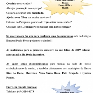 Matrículas para Educação de Jovens e Adultos encerram na segunda-feira