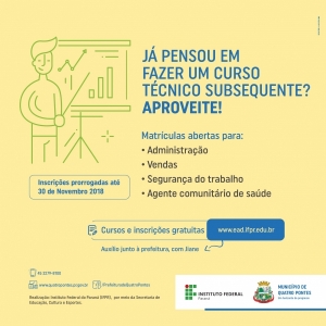 Inscrições para cursos técnicos subsequentes encerram nesta sexta-feira