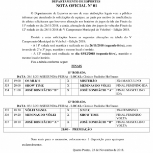 6ª rodada do Campeonato de Voleibol Categorias de Base é hoje
