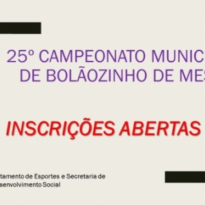 INSCRIÇÕES DO CAMPEONATO DE BOLÃOZINHO DE MESA ENCERRAM NA SEGUNDA-FEIRA