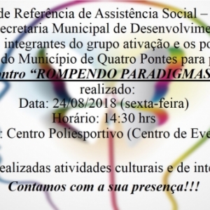 QUATRO PONTES TERÁ 1º ENCONTRO ROMPENDO PARADIGMAS NA SEXTA-FEIRA