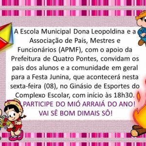ESCOLA DONA LEOPOLDINA E APMF REALIZAM HOJE FESTA JUNINA EM QUATRO PONTES
