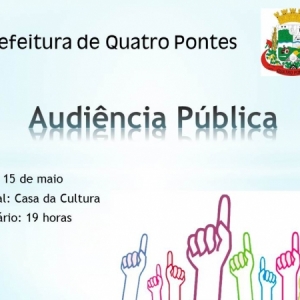 PODER PÚBLICO DE QUATRO PONTES PROMOVE AUDIÊNCIA PÚBLICA AMANHÃ