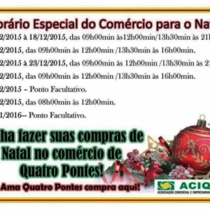 Comércio quatropontense terá horário de atendimento especial para o Natal