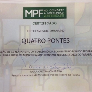Ministério Público Federal reconhece Quatro Pontes como o segundo município com maior transparência no Estado