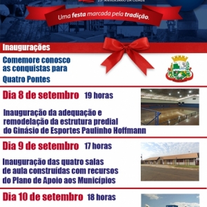 Inaugurações farão parte da semana de aniversário do município de Quatro Pontes