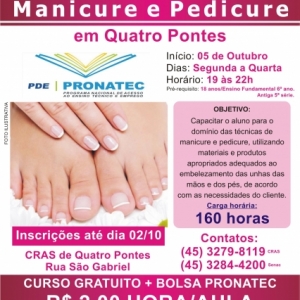 Abertas as inscrições ao curso de Manicure e Pedicure em Quatro Pontes