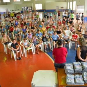 Alunos que participam de treinamento esportivo recebem novas camisetas em Quatro Pontes