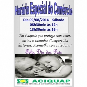 DIA DOS PAIS - Comércio de Quatro Pontes terá horário especial ao atendimento neste sábado