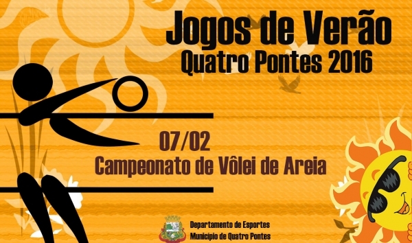 Os Jogos de Verão, uma realização do Departamento de Esportes da Prefeitura Municipal de Quatro Pontes, terão continuidade neste domingo (07). Na ocasião, acontecerá a competição de Vôlei de Areia, na Praça Cristo Rei, a partir das 15 horas.