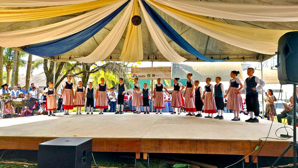 Quatro Pontes, 24 de setembro de 2025 – O grupo infantojuvenil Die Kleine Tänzer, de Quatro Pontes, participou nos dias 19 e 20 de setembro do 1º Encontro Folclórico da Colônia Witmarsum, realizado no município de Palmeira (PR).