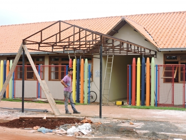 Estão sendo construídos em frente a Escola Municipal Dona Leopoldina dois toldos para garantir mais comodidade aos estudantes, principalmente em dias de chuva. Em breve estarão concluídas as obras de reforma da instituição de ensino.