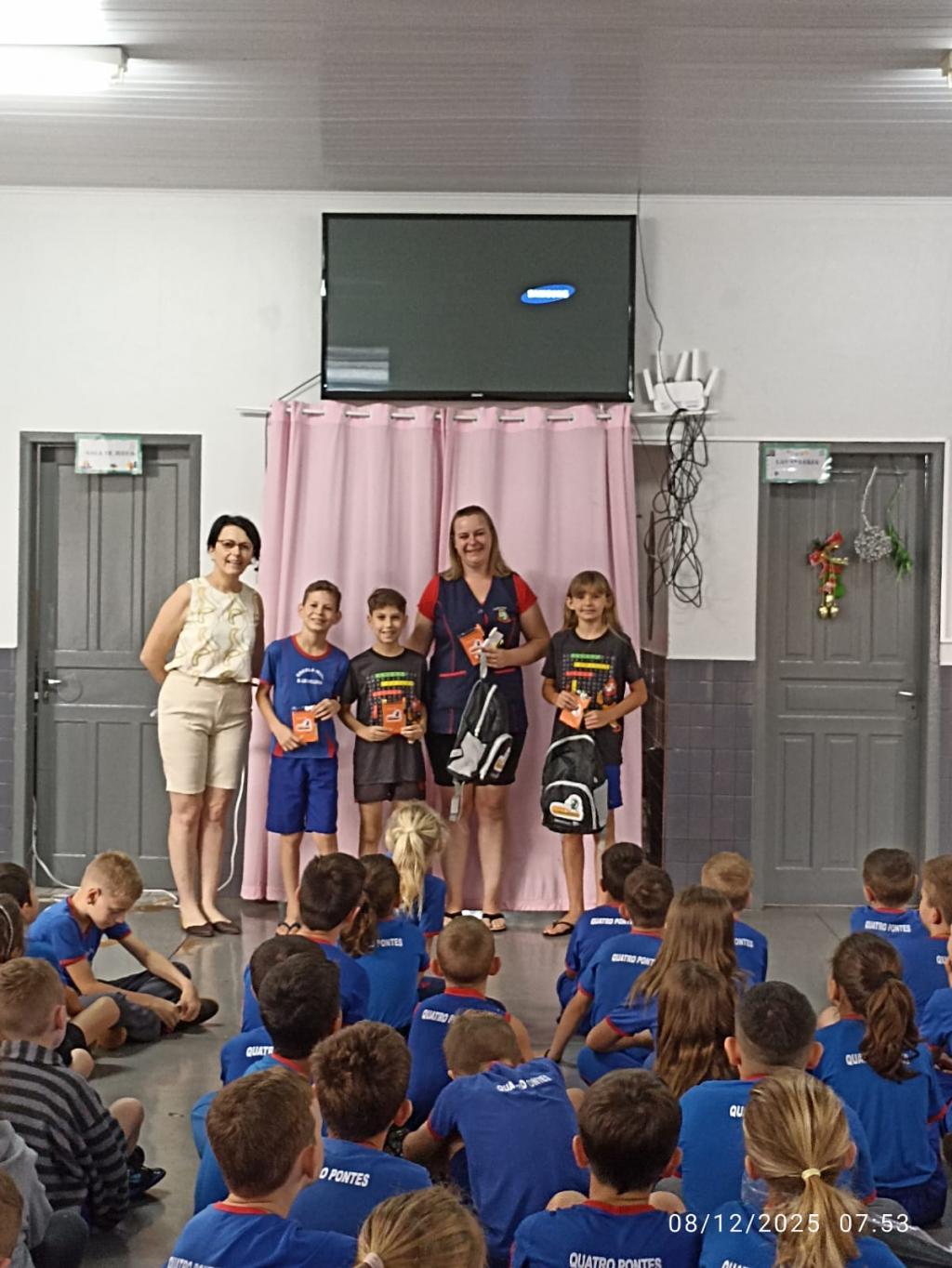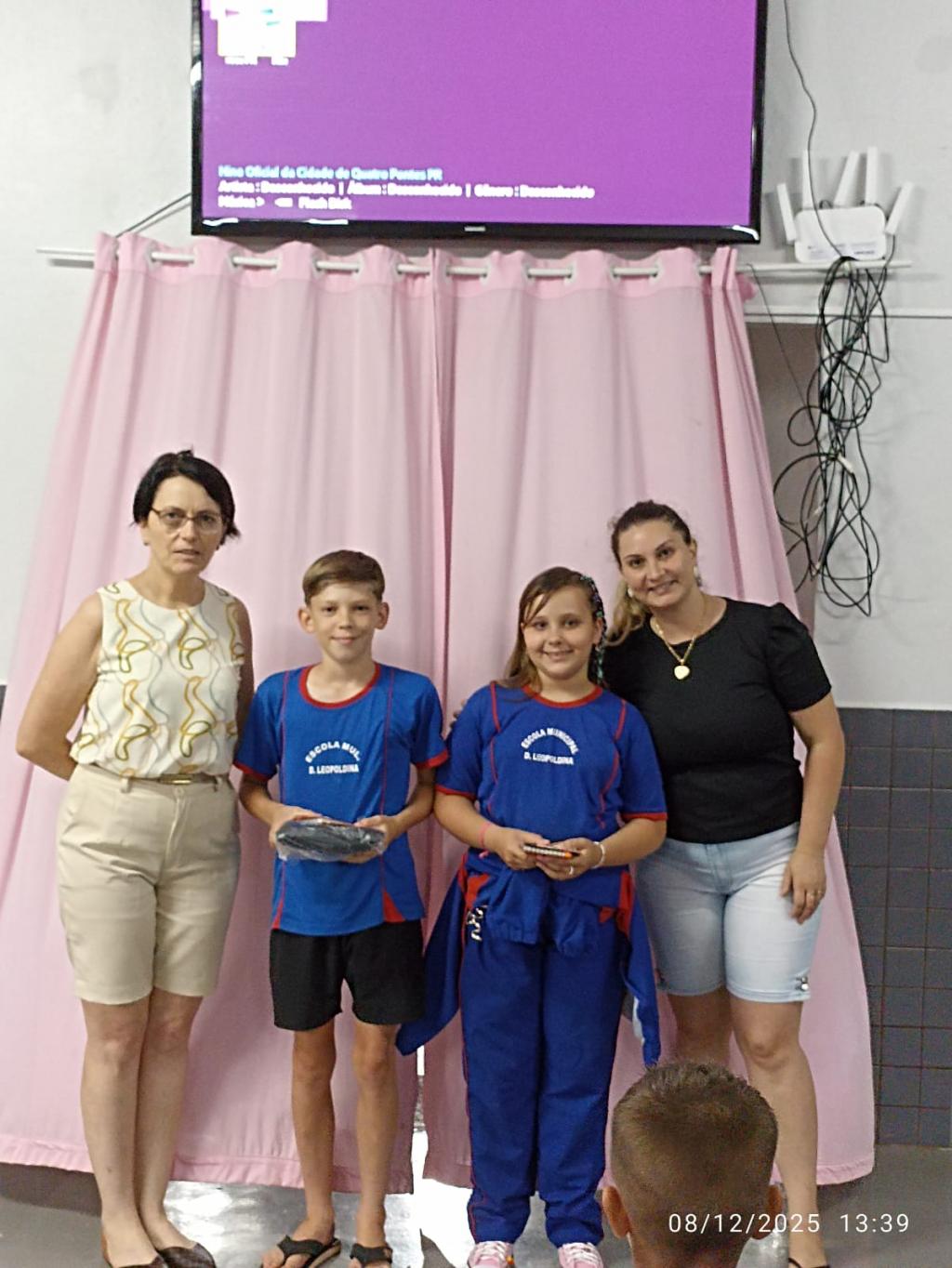 Quatro Pontes, 17 de dezembro de 2025 – A Escola Municipal Dona Leopoldina, de Quatro Pontes, realizou no dia 08 de dezembro de 2025, a Premiação Feras da Matemática, iniciativa do Programa Aprende Brasil, iniciada no mês de setembro. A ação teve como objetivo tornar os testes do Sondar uma experiência mais dinâmica, motivadora e significativa para os estudantes.