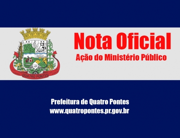 A PREFEITURA DE QUATRO PONTES, ATRAVÉS DO PREFEITO PAULO CESÁR FEYH, ESCLARECE A QUEM POSSA INTERESSAR QUE A GESTÃO MUNICIPAL TEM CUMPRIDO TODO O REGRAMENTO LEGAL NOS SEUS PROCESSOS LICITATÓRIOS, ATÉ MESMO, DISPONIBILIZANDO AO MINISTÉRIO PÚBLICO PARA QUE O MESMO ACOMPANHE A ABERTURA E DESDOBRAMENTOS DOS SEUS ATOS ADMINISTRATIVOS E LICITATÓRIOS.